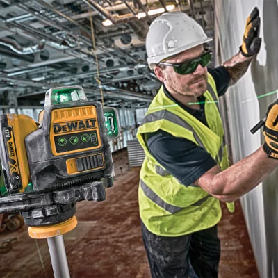 The DEWALT DCE089D1G Self-Levelling Green Multi Line Laser projects 3, 360°