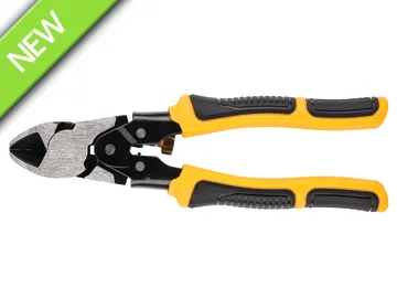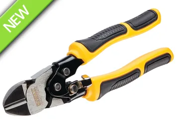 DEWALT Compound Action Diagonal Pliers with induction hardened cutting blades for 70% more cutting power over standard cutting pliers. Spring loaded for easy operation. The bi-material handles allow for a strong grip and added comfort.