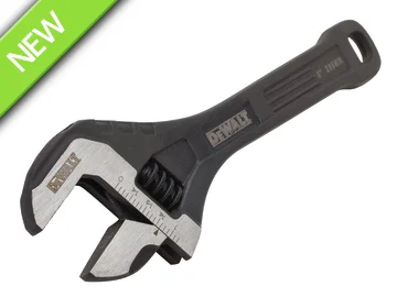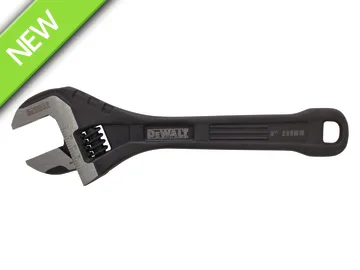 DEWALT All Steel Adjustable Wrench with precision engineered jaws to facilitate minimal jaw movement between movable and fixed jaws for precise adjustments. Markings are laser etched for precise adjustments. The extra wide jaw capacity covers a larger range of fasteners. These wrenches have a comfortable handle to help reduce fatigue over a period of use. The flared handle end helps prevent hand slipping off during use.