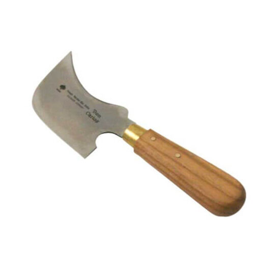Original Don Carlos moon knife in a crescent shape with light-coloured wooden handle.