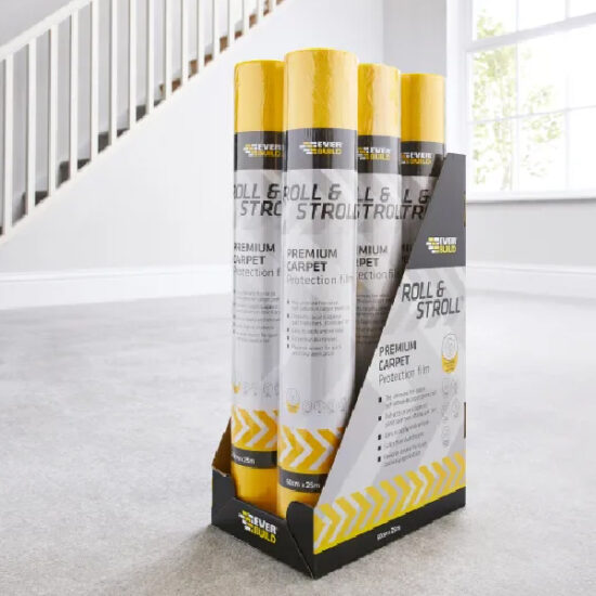 Roll & Stroll Premium Carpet Protector is the ultimate self-adhesive carpet protection system. With the adhesive coating on the outside, Roll & Stroll Premium Carpet Protector is easy to unwind, safer than dustsheets and has a multitude of uses across all trade sectors.