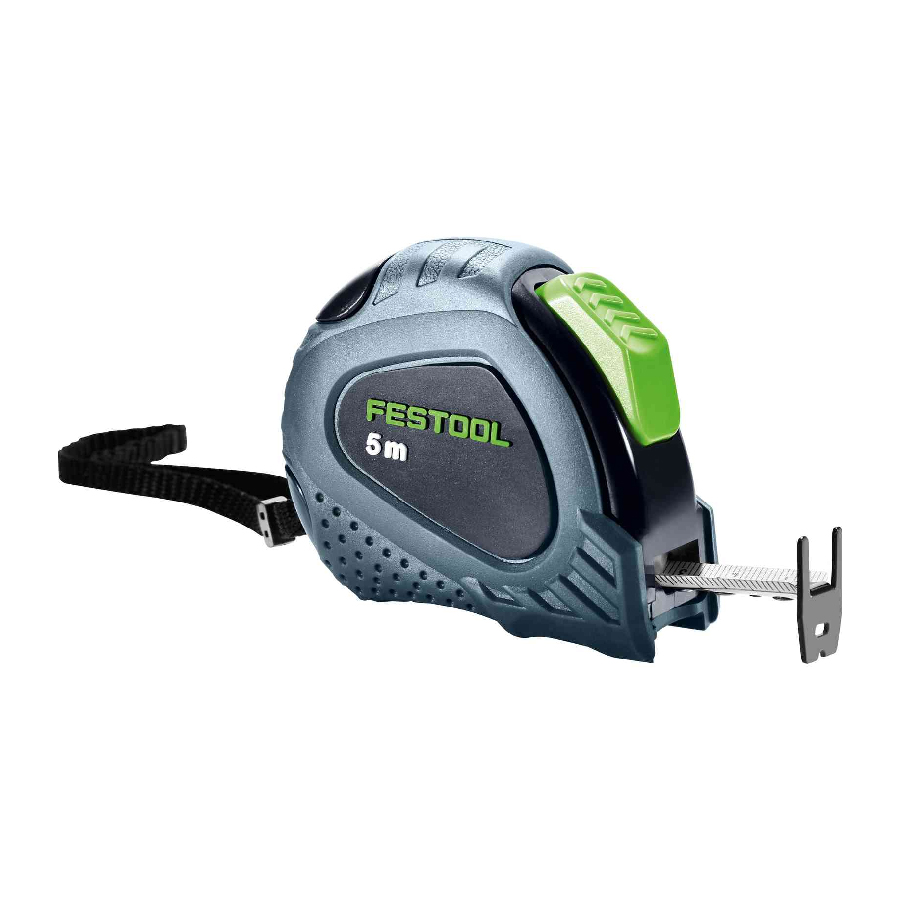robust 5 m tape measure with sturdy belt clip and automatic roller system