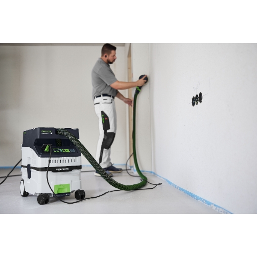 The CTM MIDI AC compact dust extractor boasts technically advanced AUTOCLEAN main filter cleaning. This keeps the filter clear and ensures consistently high suction power, longer working intervals and a longer filter service life with lower maintenance effort. Its low weight and compact dimensions make it ideal for service and installation work. With lots of innovative details, such as the smooth suction hose and touch operation. Integrated Bluetooth® technology starts the mobile dust extractor automatically via the Bluetooth® battery pack or the optional remote control. The internal hose holder, the Systainer T-LOC coupling and the practical cord holder ensure tidiness and speed.