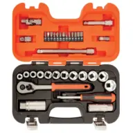 • 27 x 1/2″ Dr. Socket Set: 8, 9, 10, 11, 12, 13, 14, 15, 16, 17, 18, 19, 20, 21, 22, 23, 24, 25, 26, 27, 28, 29, 30, 32, 34 and 36mm