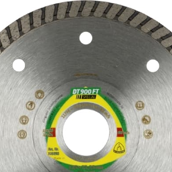 Offered as part of the 900 product line, the diamond cutting blade DT 900 FT Special ranks among Klingspor’s highest performing tools. Best cutting performance, maximum aggressiveness and a long service life make this tool the ideal choice for the toughest jobs. Steep requirements on performance and reliability during use are no problem at all for this cutting blade – and the result is never anything but immaculate and convincing. The key quality and performance characteristic of this product is its turbo continuous rim, as it ensures clean edges and precise work thanks to its exceptionally smooth operation. The diamond cutting blade is designed for stoneware, tiles and granite and can be purchased with different diameters, allowing customers to pick the cutting blade that is perfect for their particular application.
