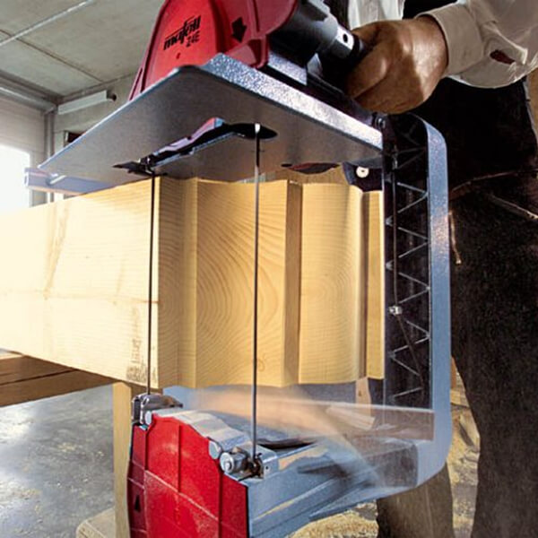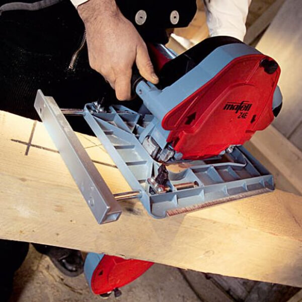 The Z 5 Ec portable bandsaw is the innovative successor to the legendary Z 3. Owing to a new, high-output motor and magnesium die-cast components, its persuasive benefits includes reduced weight (13.6 kg / 30.2 lbs), enhanced performance, higher torque and excellent handling. Exclusive with ball bearing saw band guidance for excellent band running and thus for optimum cutting. Maximum 8 mm (5/16 in.) saw bands for optimum flexibility when curving and profiling purlins and rafters. The Z 5 Ec offers an impressive cutting depth of 305 mm (12 in.). The precision that typifies MAFELL portable bandsaw enables the Z 5 Ec to execute extremely clean and perfectly square cuts. The cooling air of the high-performance motor is utilized to blow away dust from the mark. As a consequence, chips are kept well away from your head and you maintain a clear view of the mark at all times.