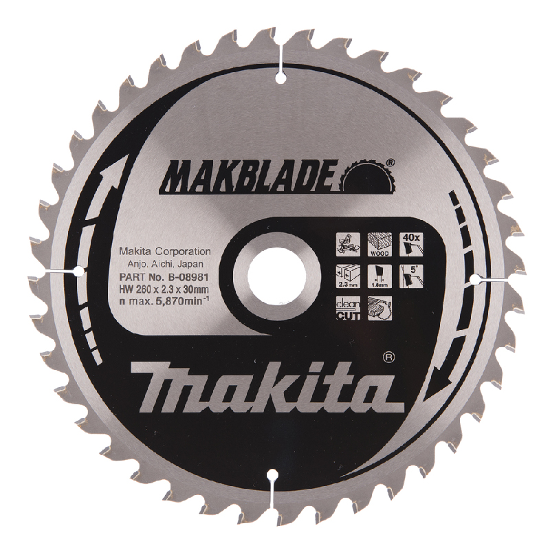 Makita B-08981, Circular saw blade, Makblade T.C.T, 260 x 30 mm, 40 T