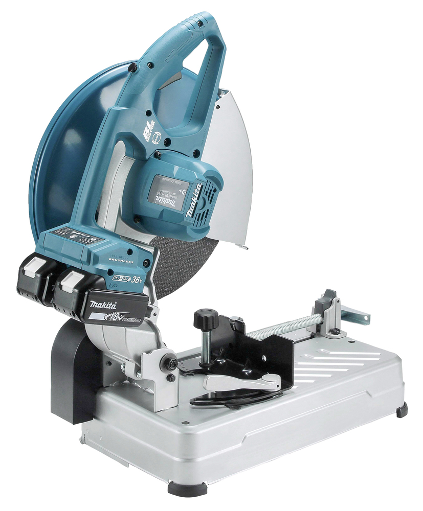 A powerful cut-off saw for accurate, safe and quick cutting of metal. A high 36V is achieved with two 18V LXT® batteries. A carry handle for easy transport and a spark guide for added safety. An adjustable cutting depth and material clamp improve user convenience.
