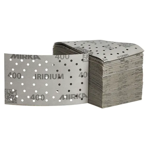 Iridium is a premium paper abrasive for universal sanding. Perfected for speed and efficiency, it has a mix of ceramic and aluminium oxide grains on a flexible paper with precision coating that prevents clogging and reduces pilling. It practically repels dust and lifetime is increased as the grains stay sharp for longer. Dust extraction is optimised with multihole patterns for discs and strips. Iridium delivers amazing results on both soft and hard surfaces, making it the ideal paper abrasive choice for professionals in any industry.