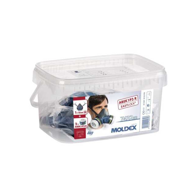 Supplied with ABEK1P3 EasyLock filters in a reusable storage tub