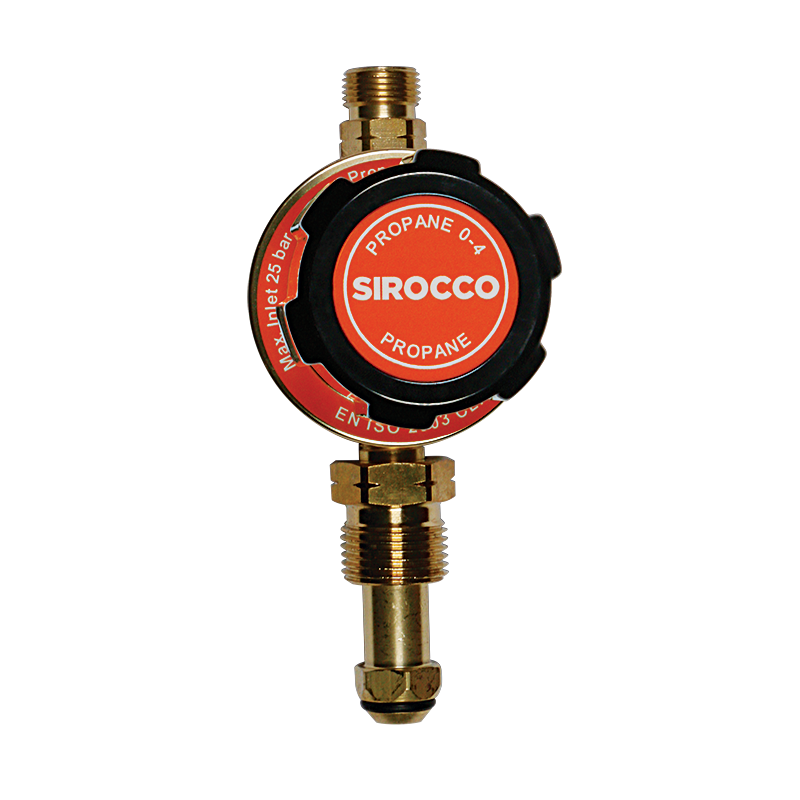 Sirocco Everyday Single Stage Plugged Propane Gas Regulator. Propane Regulators have a 25 bar capability with a 4 bar maximum outlet pressure. Sirocco Gas Regulators allow for extended service with its robust construction. Reliable and Consistent Delivery can be achieved due to the high-quality valve operation.
