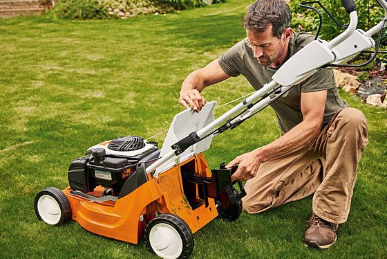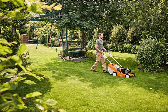 Self-propelled petrol lawn mower with powerful STIHL EVC 300 engine. Vario drive for adjustable speed control and rear roller for the perfect striped lawn pattern. Excellent cutting and collecting performance for medium-sized lawns.