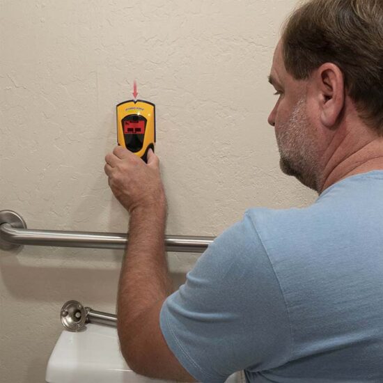 StudScan mode locates the center, edges, and direction of wood or metal studs up to 3⁄4 in. (19 mm) deep